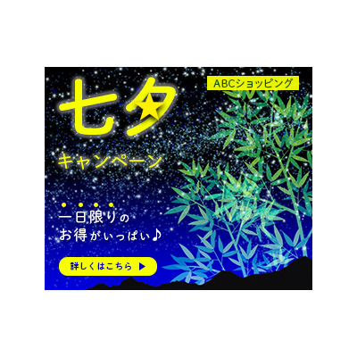 七夕のキャンペーンを伝えるバナー(架空)です。ターゲットは20〜30代の男女。星をイメージした黄色をメインカラーにし、「夕」の中に星を入れました。文字からボタンまでを左揃えにしてすっきり見せるようにしました。