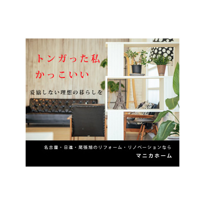職業訓練校にて企業ブランディングの課題で愛知県のリフォーム会社であるマニカホーム様の企業ブランディングのチラシを作成しました。マニカホーム様のおしゃれなリフォーム、ワンランク上の暮らしを提案するという姿勢はお客様の理想を尖らせることであろうと思ったのでそれを「トンガった私かっこいい」というキャッチフレーズに落とし込みました。とんがったリフォーム会社というのは聞いたことがあまりないように思ったので、企業ブランディングとしては良いのではないかと思いました。ターゲット層は30~50代のハイエンド層。美容室やカフェ、ベーカリーなどおしゃれに敏感な人が訪れる場所へチラシを設置してアプローチすることを想定しています。