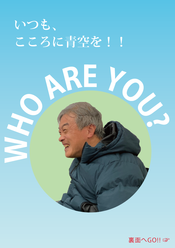 職業訓練校にてパーソナルブランディング企画として障害者の森義親さんをブランディングするという課題で制作したものです。 いろいろな場所でチラシを置いてもらうことを想定し、アイキャッチとして写真を大きくして目立たせながらもシンプルでおしゃれな感じを目指しました。テーマカラーは森さんの好きな色「スカイブルー」、「いつも、こころに青空を!!」は森さんの座右の銘です。ターゲット層は30~40代の男女。配布想定場所はカフェ、美術館、博物館、デパートなどです。